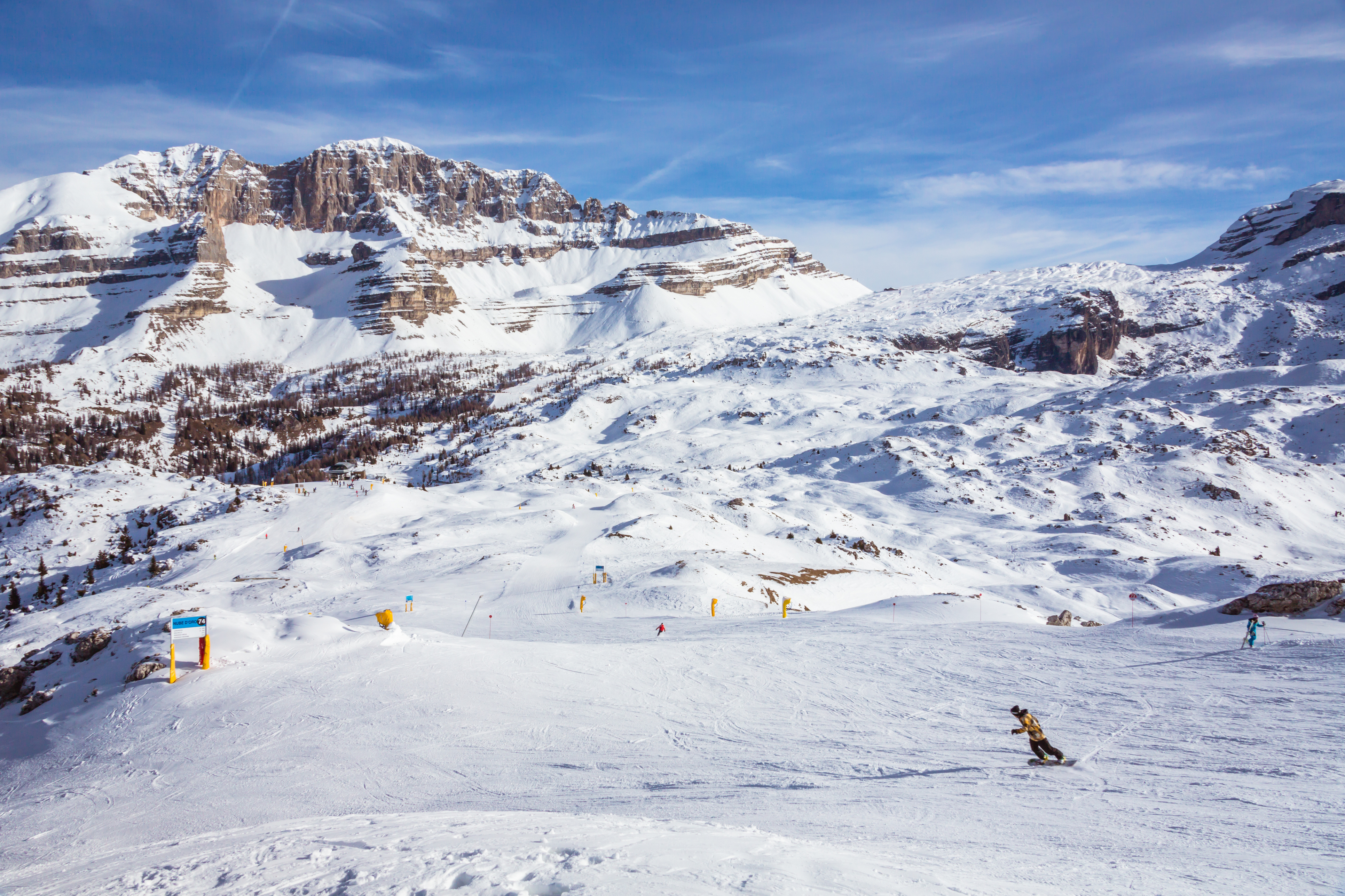 Part of the expansive 150km Ski Area Campiglio, which includes Madonna di Campiglio, Pinzolo offers a variety of slopes to suit all levels. The nursery slopes at the top of the Pinzolo-Prà Rodont gondola are perfect for beginners, while the local Doss del Sabion mountain boasts wide, rolling reds and blues, along with the exhilarating Tulot Audi Quattro black slope for those looking for a challenge.